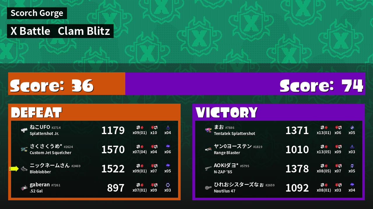 | Medals | #1 Overall Splatter #1 Enemy Splatter #1 Clam Stopper | ||