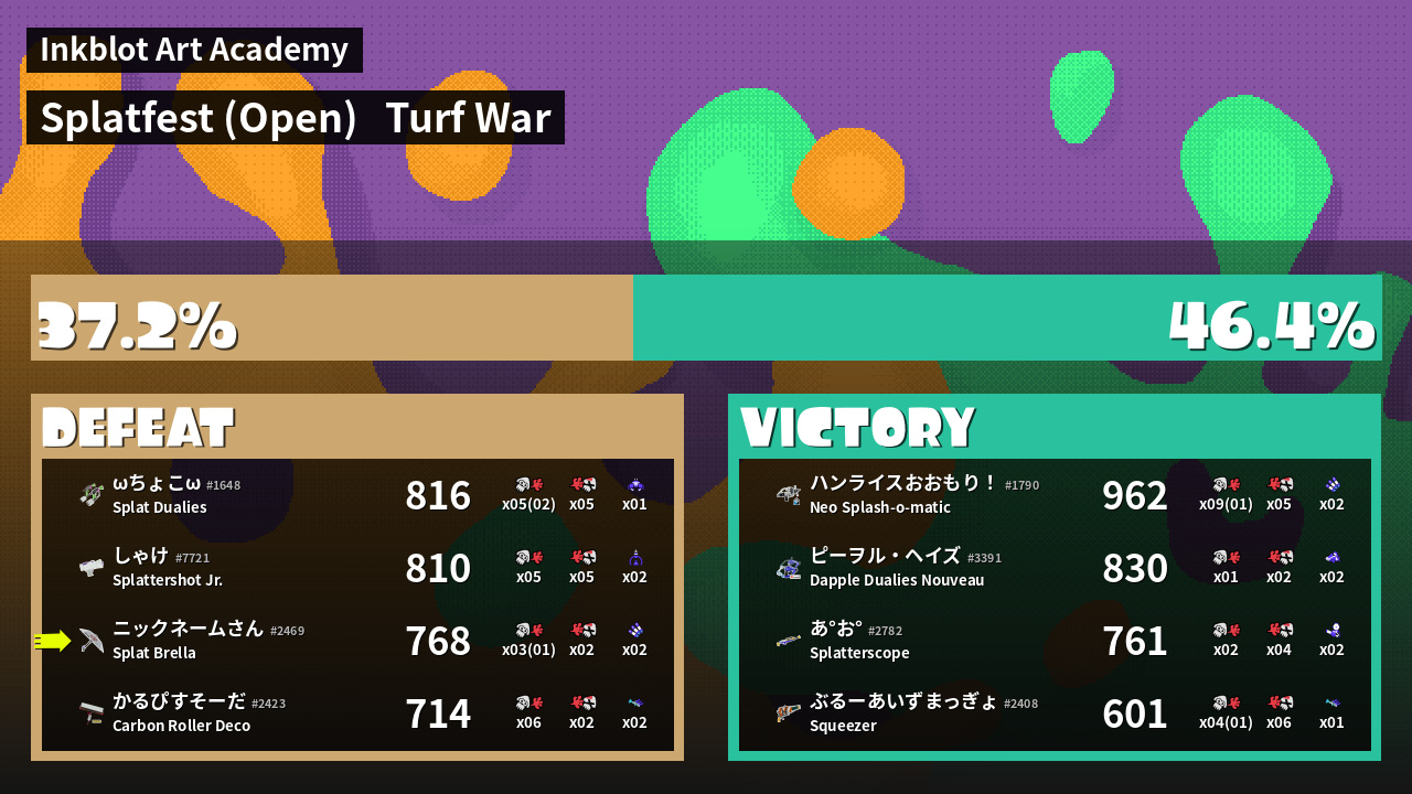 | Medals | #1 Damage Taker #1 Ink Consumer #2 Popular Target | ||