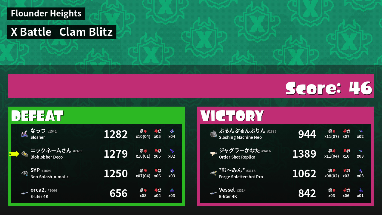 | Mode | Clam Blitz - X Battle | ||