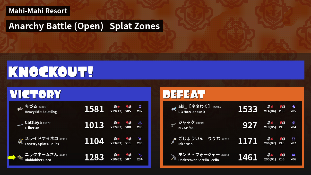 | Mode | Splat Zones - Anarchy Battle (Open) | ||