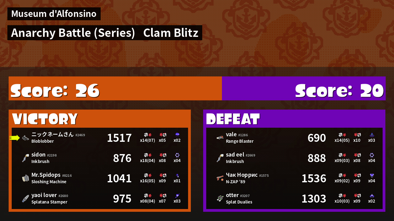 Results of nicks's Battle