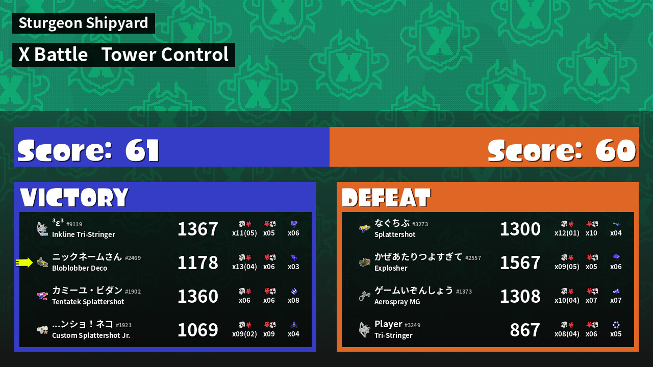 | Medals | #1 Overall Splatter #1 Enemy Splatter #1 Tower Stopper | ||