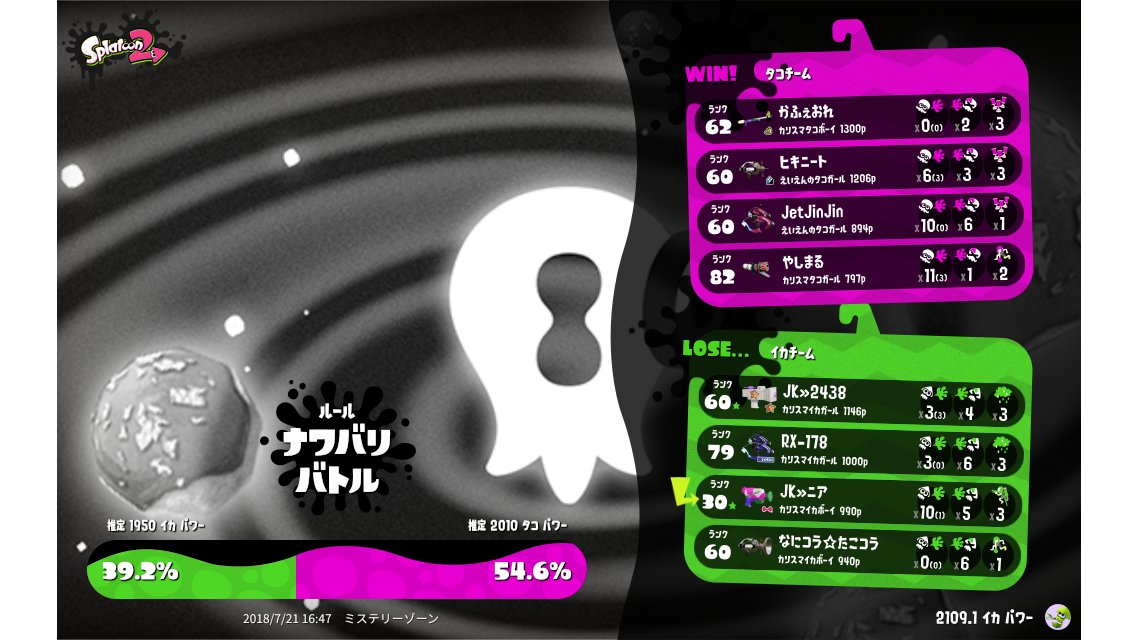 | Their team's splatfest power | 2,010 | ||||||||||||||||||||||||||||||||||||||||