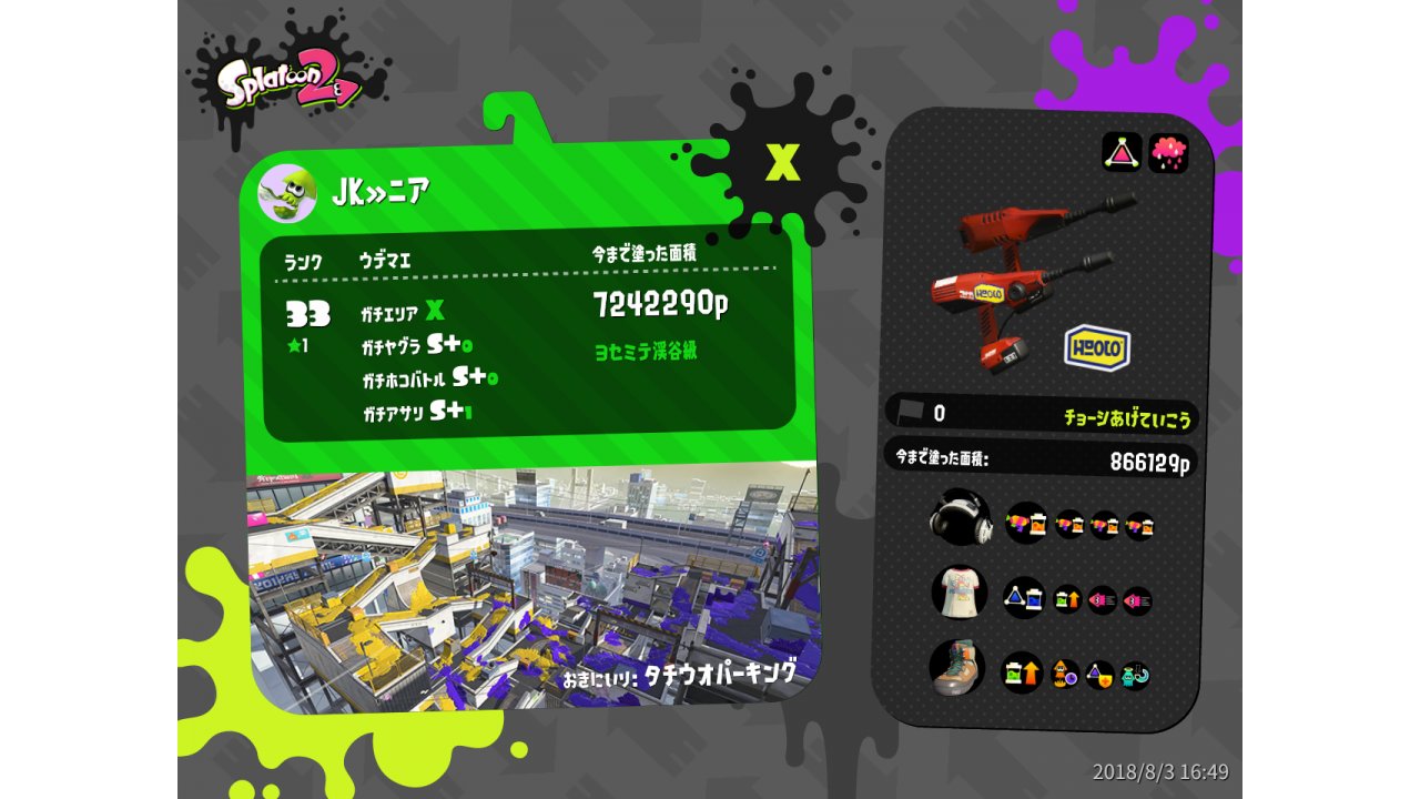 | Name | Weapon | Level | Rank | Inked | k+a/sp | k/d |