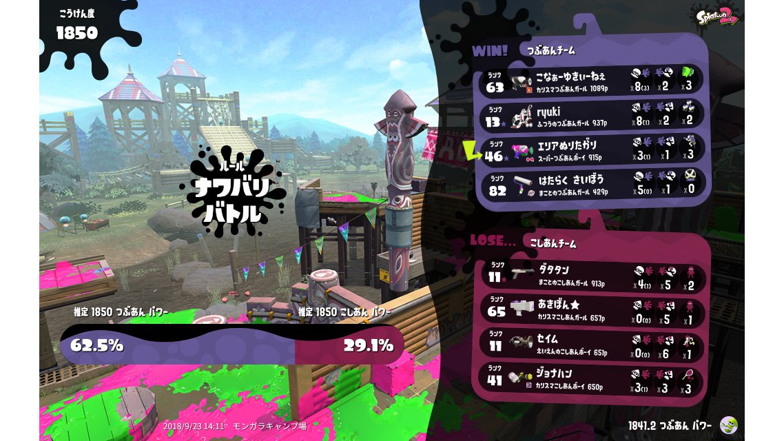 | Their team's splatfest power | 1,850 | ||||||||||||||||||||||||||||||||||||||||||||||