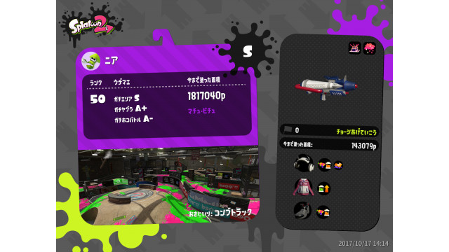 | Weapon | Splattershot Pro ( Point Sensor, Ink Storm) |