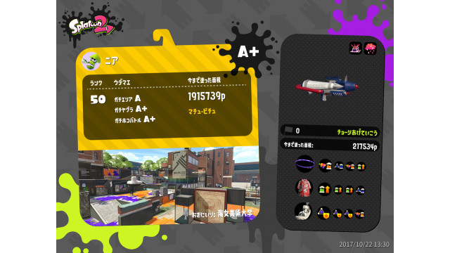 | Weapon | Splattershot Pro ( Point Sensor, Ink Storm) |