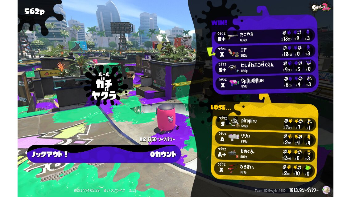 | Name | Weapon | Level | Rank | Inked | k+a/sp | k/d |