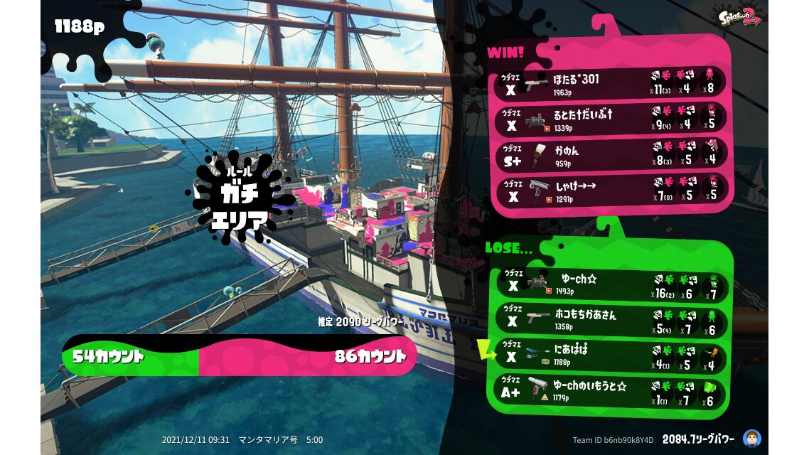 | Mode | Splat Zones - League Battle (Quad) | ||||||||||||||||||||||||||||||||||||||||