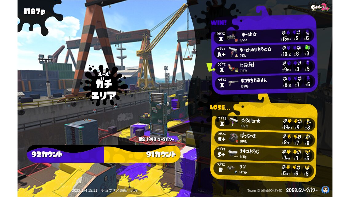 | Mode | Splat Zones - League Battle (Quad) | |||||||||||||||||||||||||||||||||||||