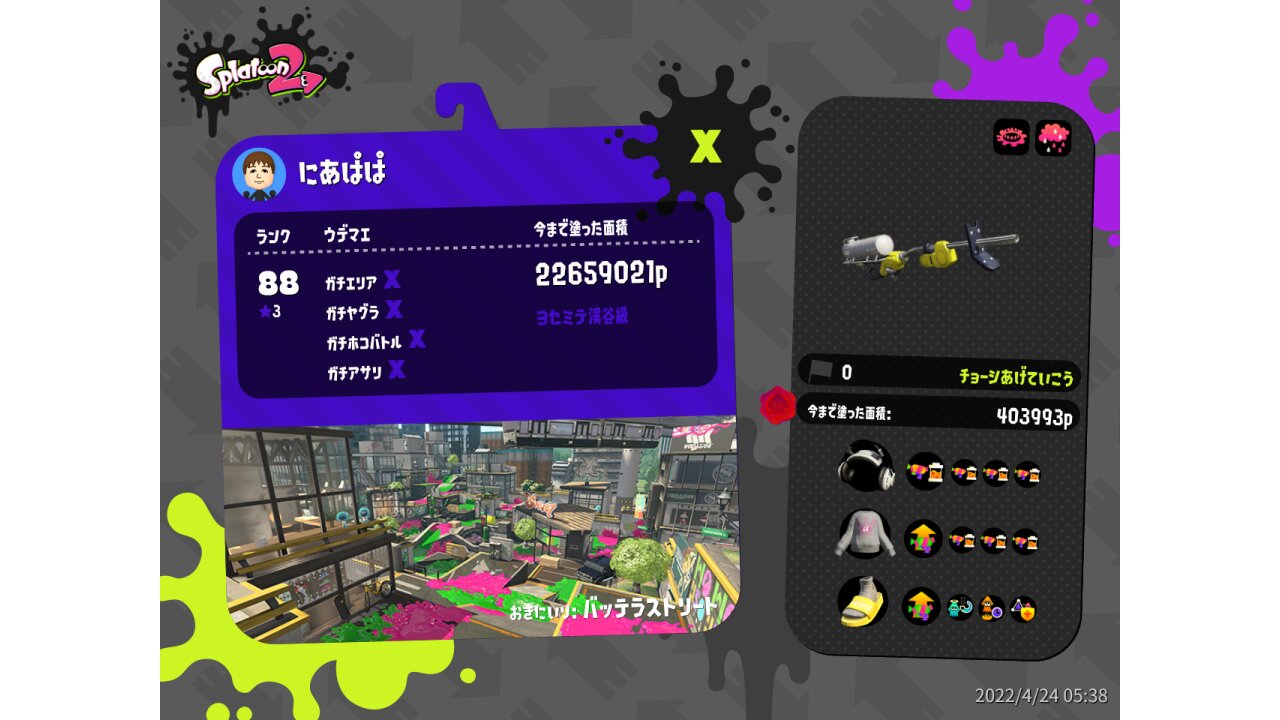 | SplatNet Battle # | 26,023 | ||||||||||||||||||||||||||||||||||
