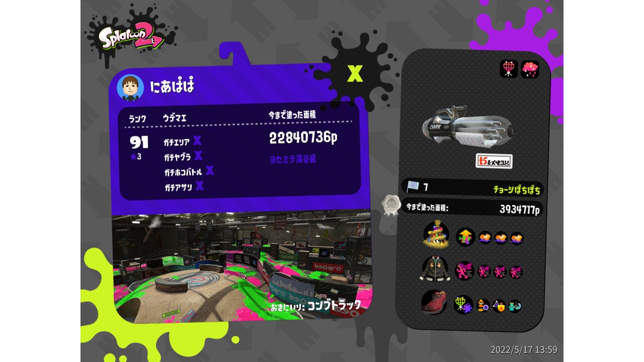 | Mode | Splat Zones - League Battle (Twin) | ||||||||||||||||||||||||||||||||||||||||