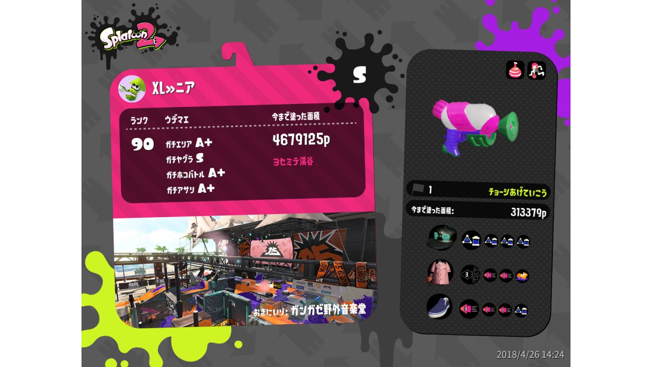 | Name | Weapon | Level | Rank | Inked | k+a/sp | k/d |