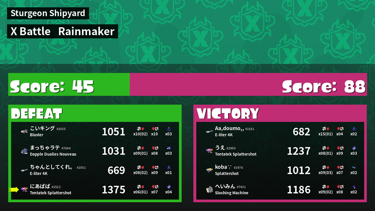 | Mode | Rainmaker - X Battle | ||