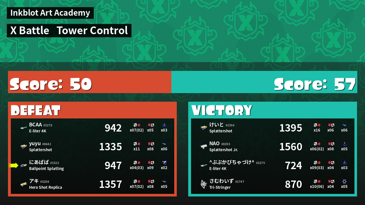 | Mode | Tower Control - X Battle | ||