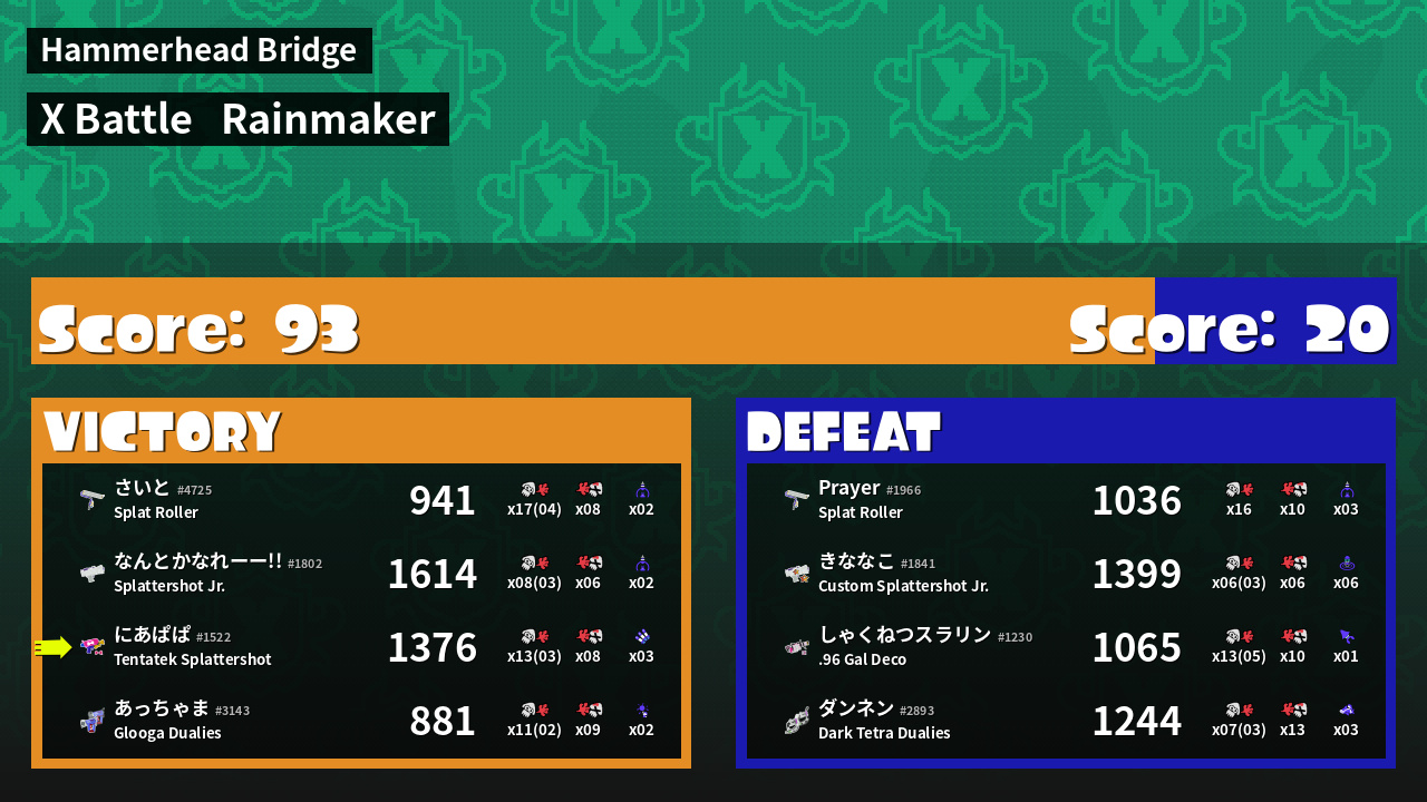 | Mode |    Rainmaker -   X Battle | ||