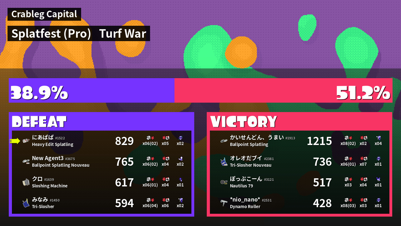 | Mode | Turf War - Splatfest (Pro) | ||