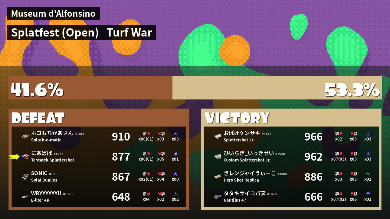 | Mode | Turf War - Splatfest (Open) | ||