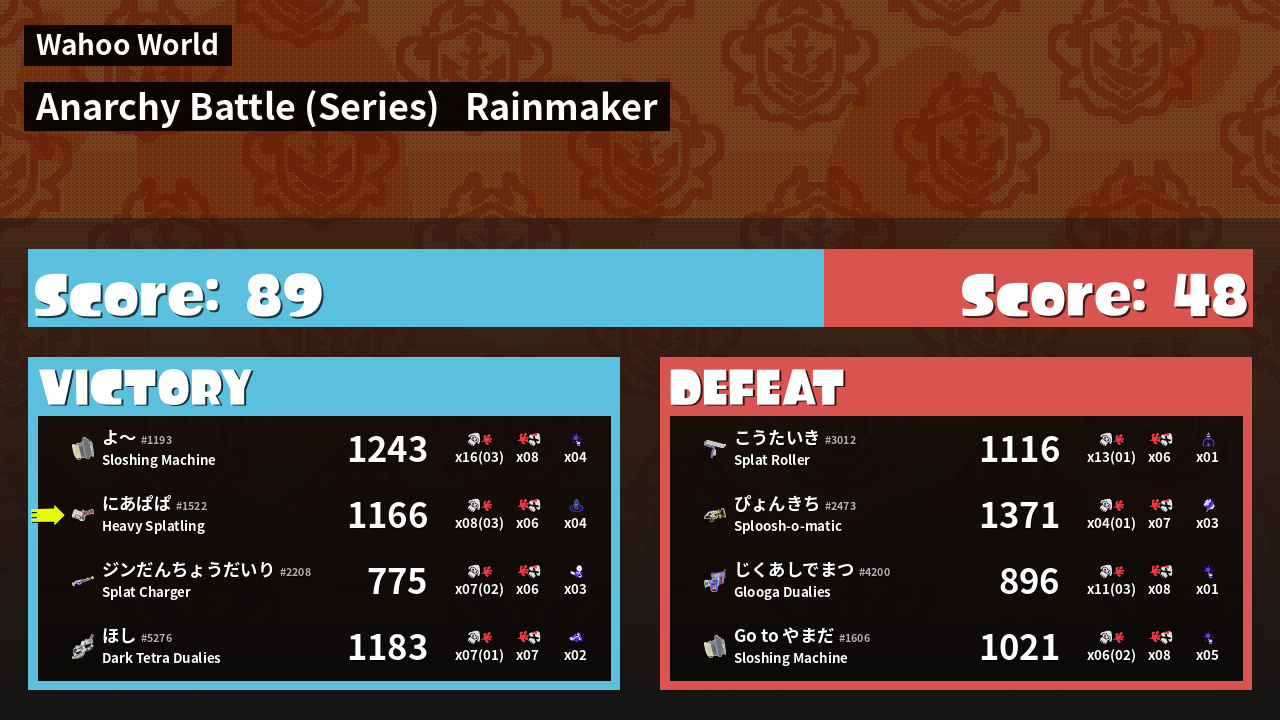 | Mode | Rainmaker - Anarchy Battle (Series) | ||