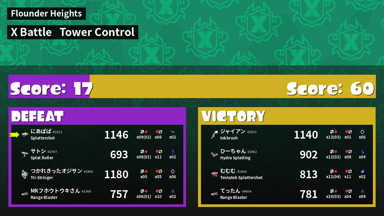 | Medals | #1 Overall Splatter #1 Enemy Splatter #1 Splat Assister | ||