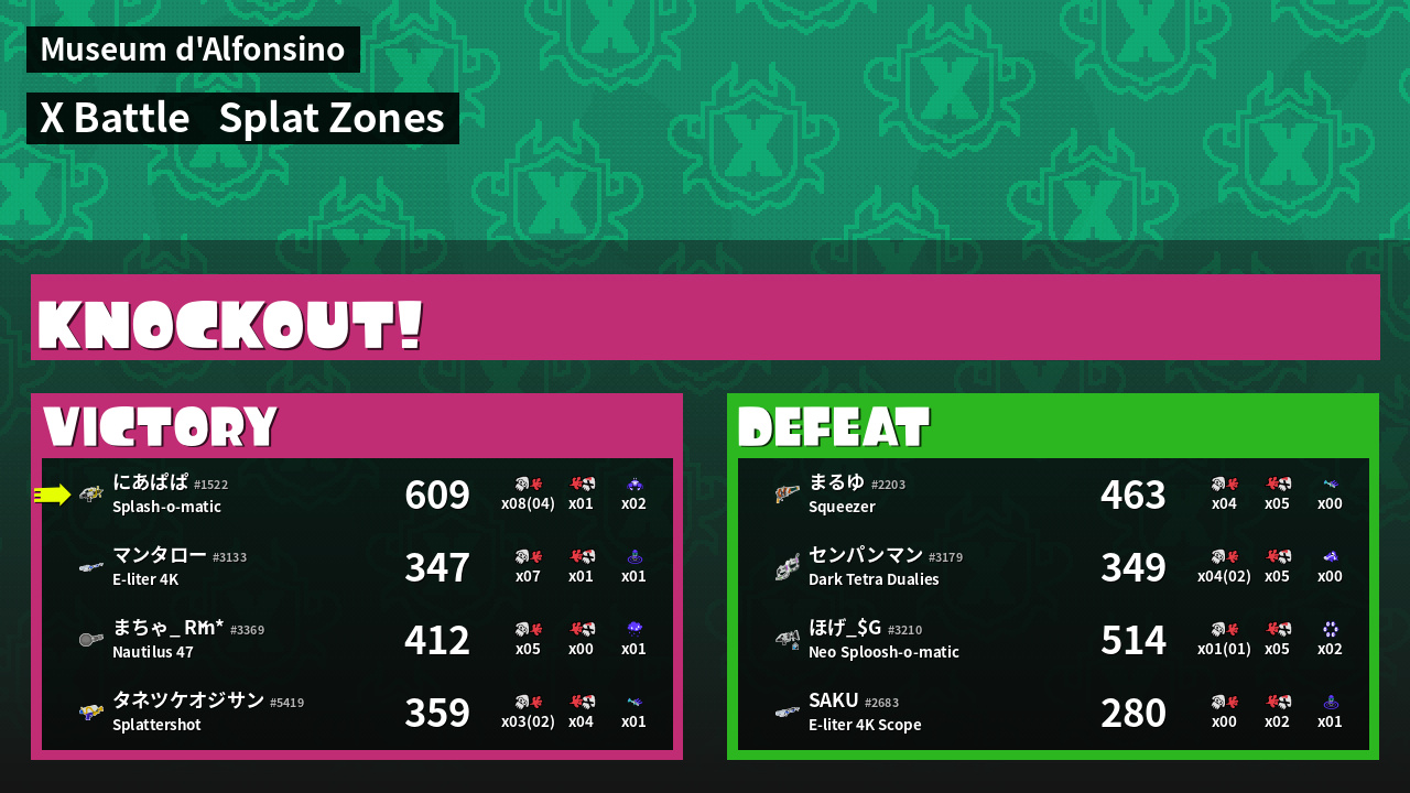 | Mode | Splat Zones - X Battle | ||