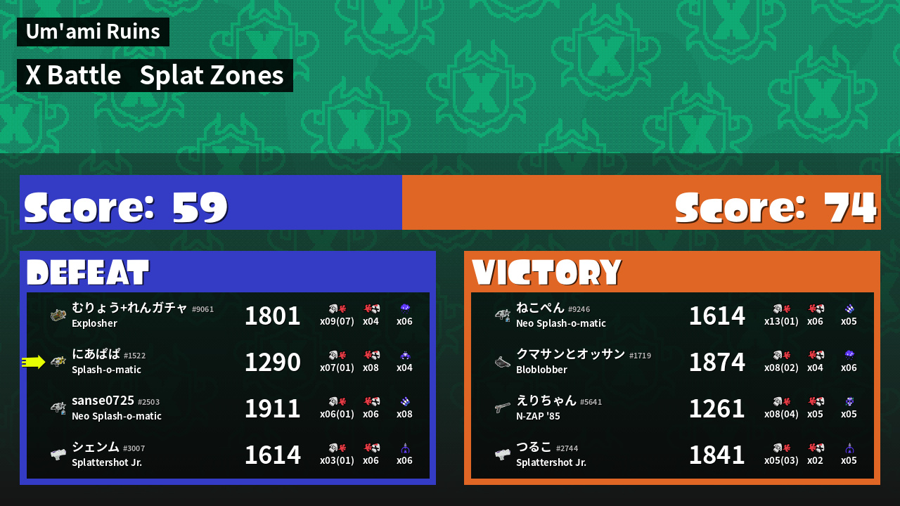 | Mode | Splat Zones - X Battle | ||