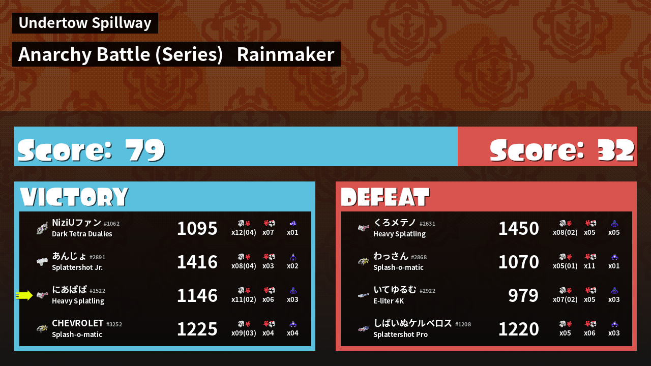 | Medals | #1 Score Booster #1 Enemy Splatter #1 Rainmaker Carrier | ||