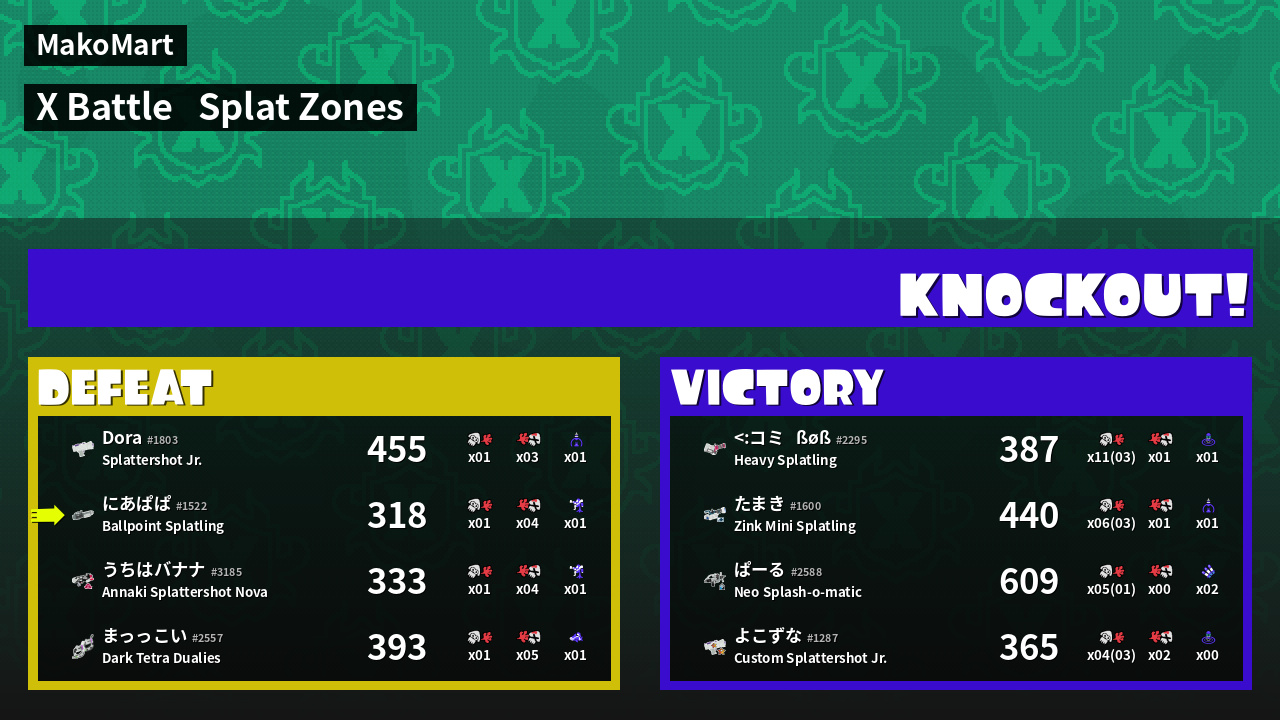 | Mode | Splat Zones - X Battle | ||