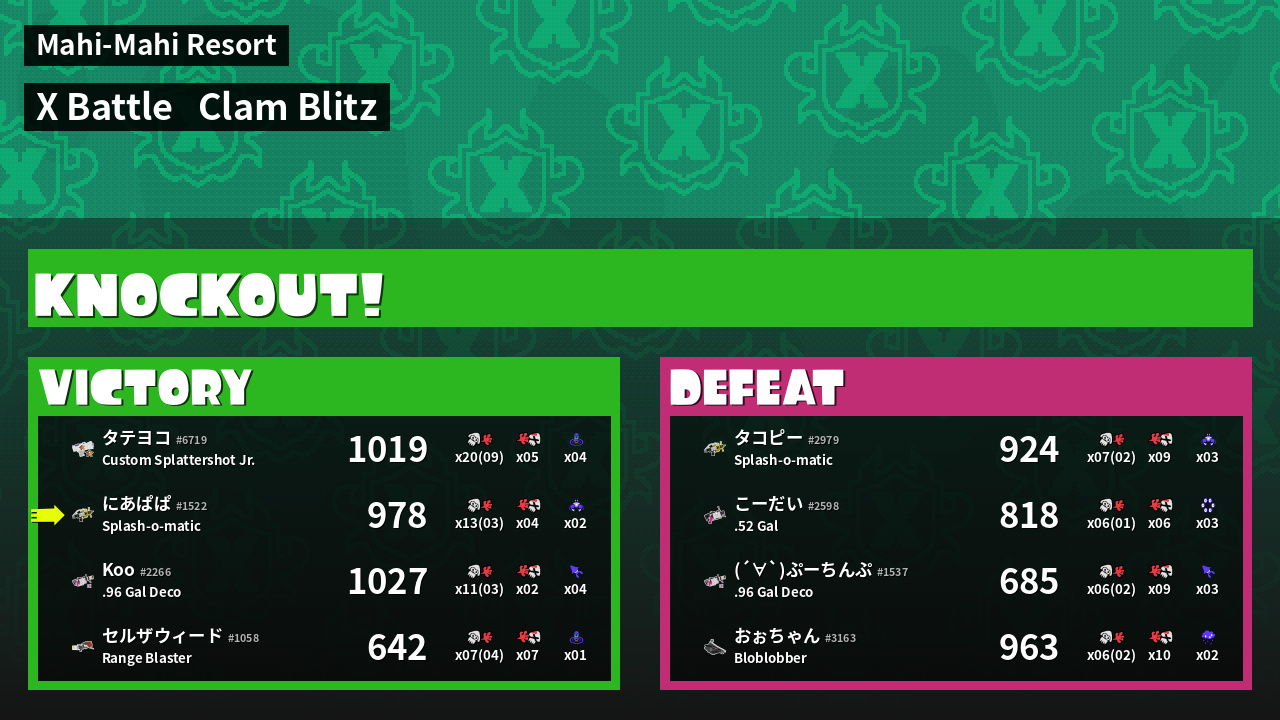 | Mode | Clam Blitz - X Battle | ||