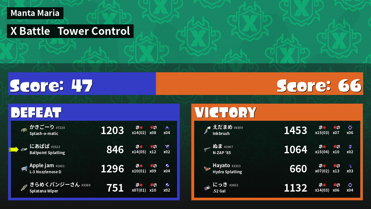 | Medals | #1 Overall Splatter #1 Splat Assister #1 Checkpoint Breaker | ||