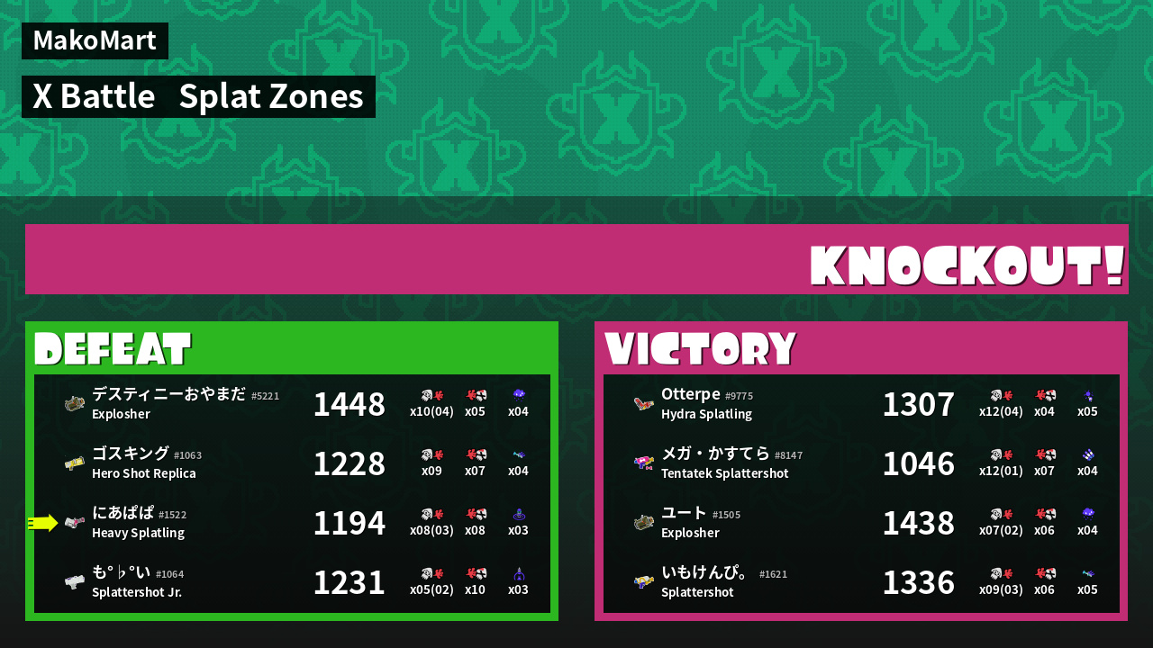 | Mode | Splat Zones - X Battle | ||