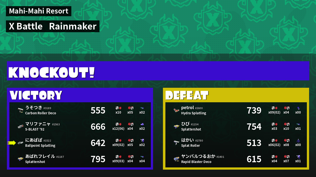 | Mode | Rainmaker - X Battle | ||