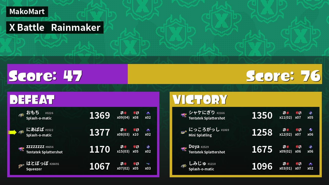 | Weapon | Splash-o-matic ( Burst Bomb / Crab Tank) | ||