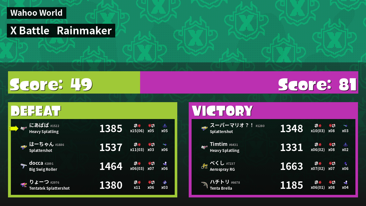 | Medals | #1 Overall Splatter #1 Super Jump Spot #1 Splat Assister | ||