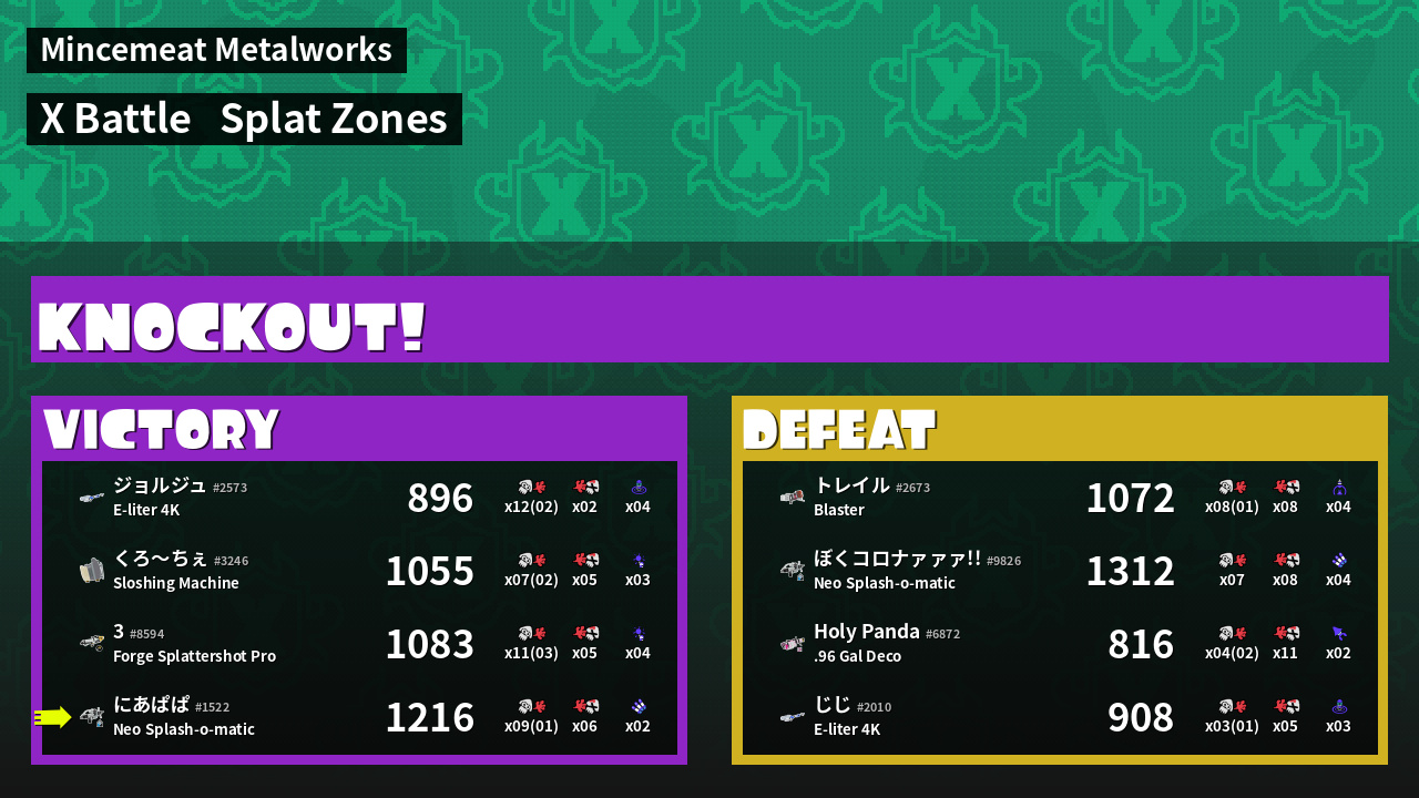 | Medals | #1 Turf Inker #1 Splat Zone Hero #1 Damage Taker | ||
