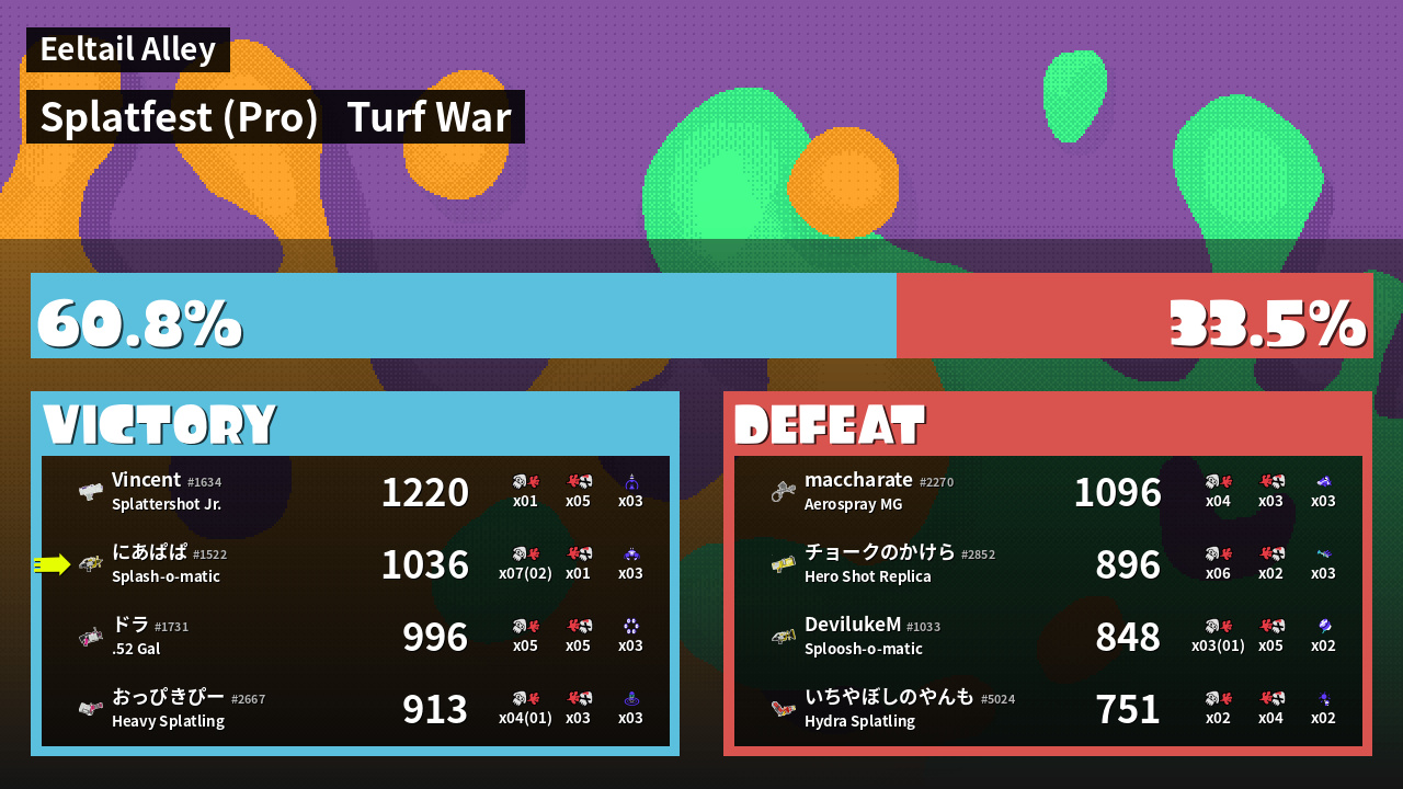 | Medals | #1 Overall Splatter #1 Popular Target #1 Enemy-Base Inker | ||