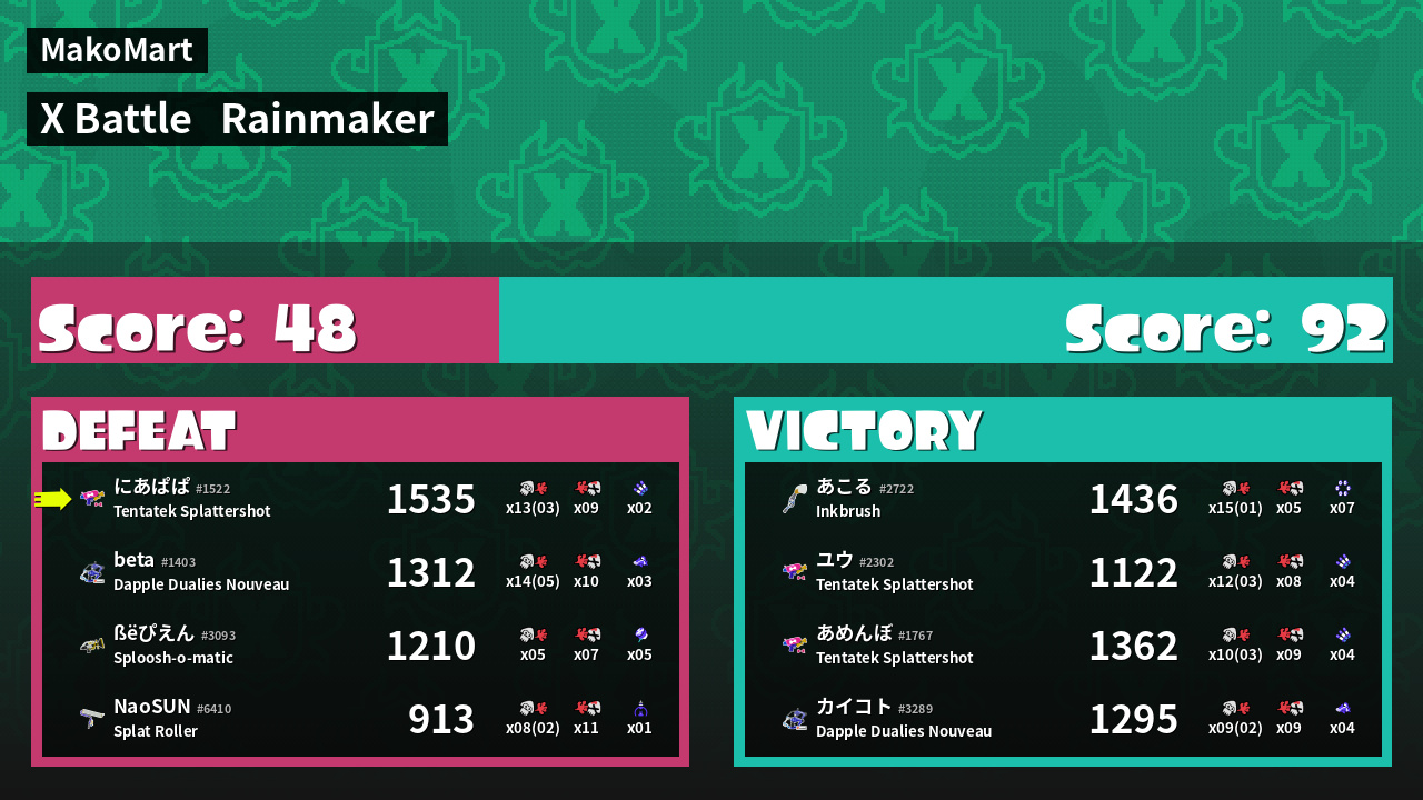 | Medals | #1 Turf Inker #1 Popular Target #1 Enemy Splatter | ||