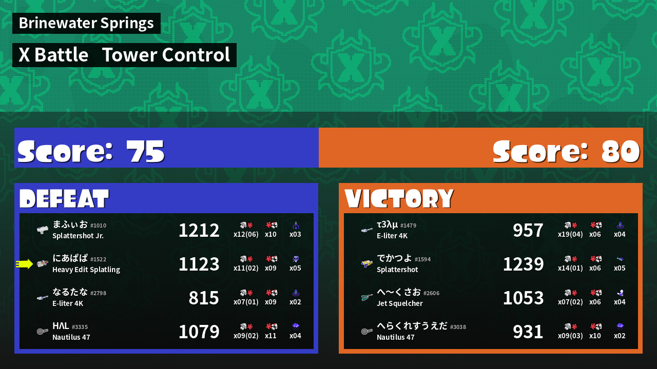 | Mode | Tower Control - X Battle | ||