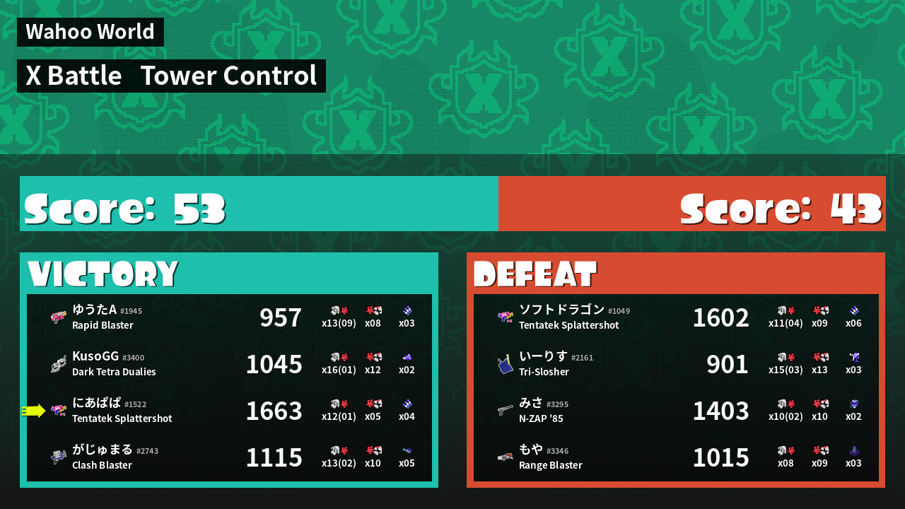 | Mode | Tower Control - X Battle | ||