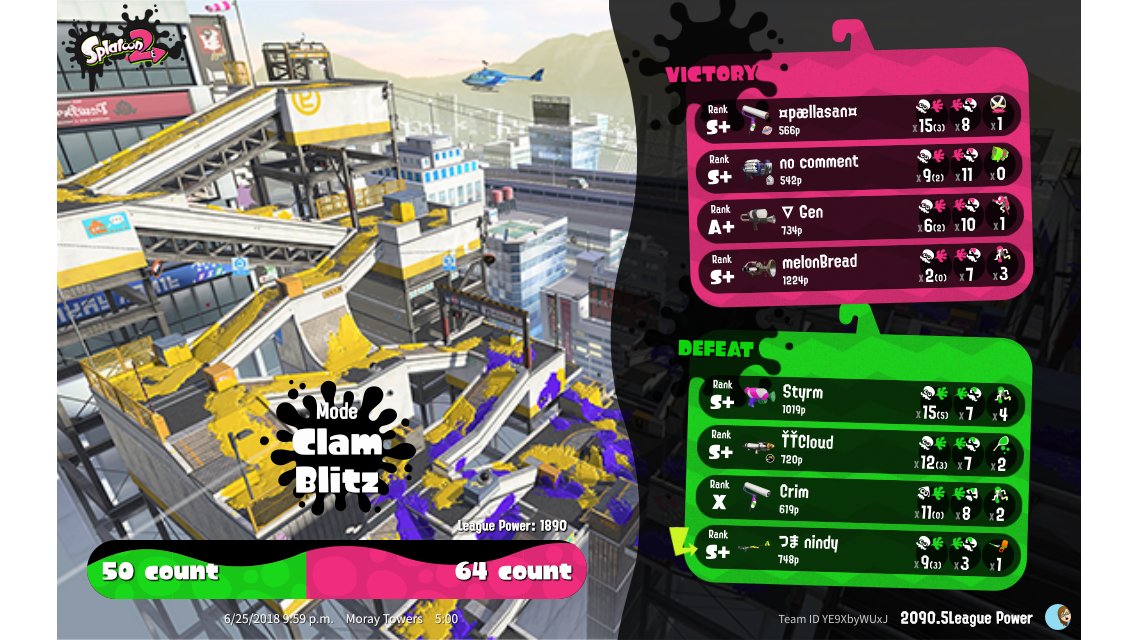 | Mode | Clam Blitz - League Battle (Quad) | |||||||||||||||||||||||||||||||||||||