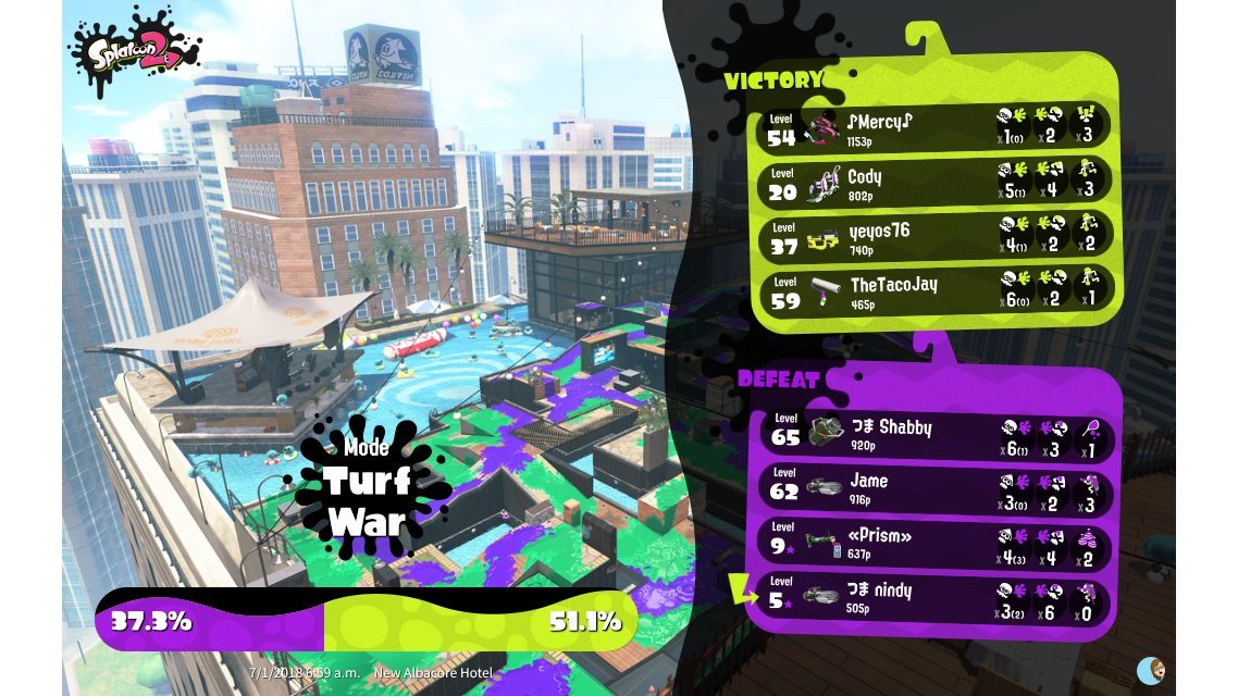 | Mode | Turf War - Regular Battle | |||||||||||||||||||||||||||||||||||||