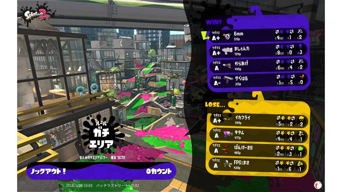 | Name | Weapon | Level | Rank | Inked | k+a/sp | k/d |
