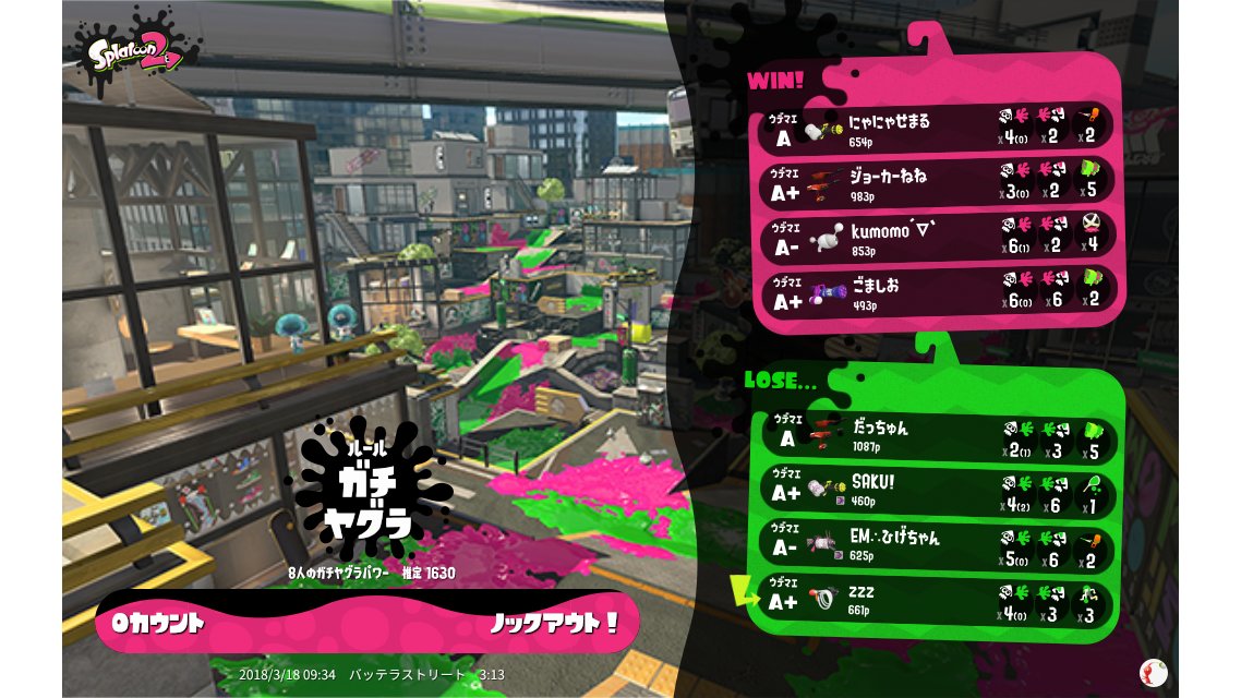 | Name | Weapon | Level | Rank | Inked | k+a/sp | k/d |