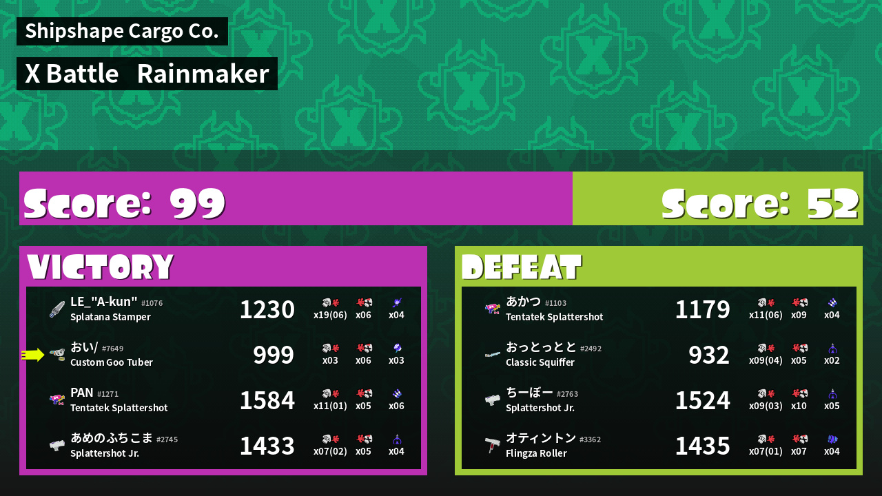 | Weapon | Custom Goo Tuber ( Fizzy Bomb / Ultra Stamp) | ||