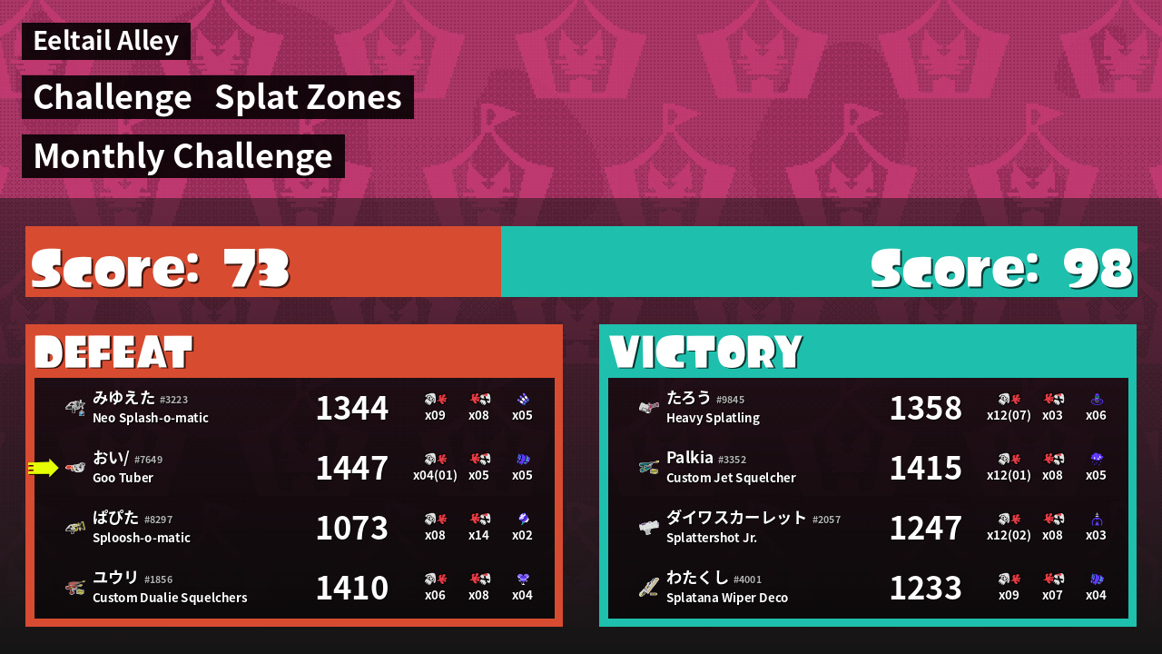 | Medals | #1 Turf Inker #1 Super Jump Spot #1 Splat Assister | ||