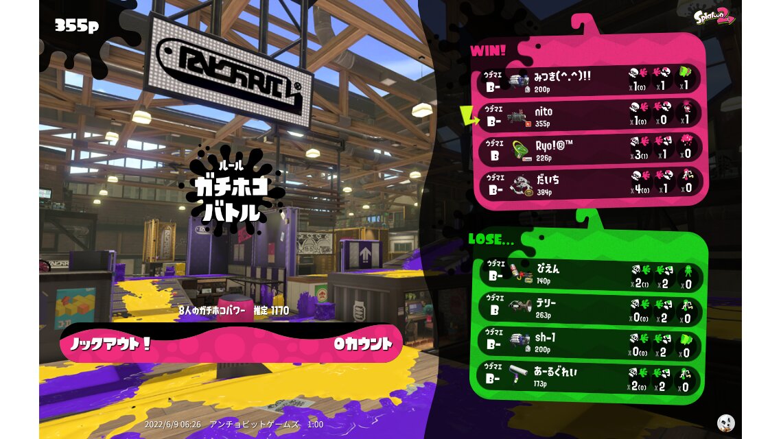 | Name | Weapon | Level | Rank | Inked | k+a/sp | k/d |