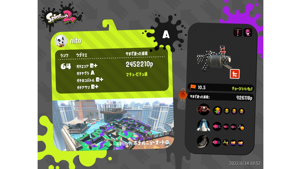 | Name | Weapon | Level | Rank | Inked | k+a/sp | k/d |