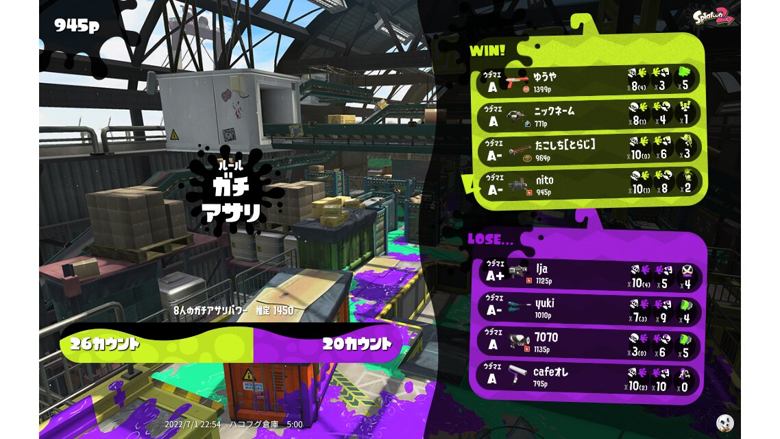| Name | Weapon | Level | Rank | Inked | k+a/sp | k/d |