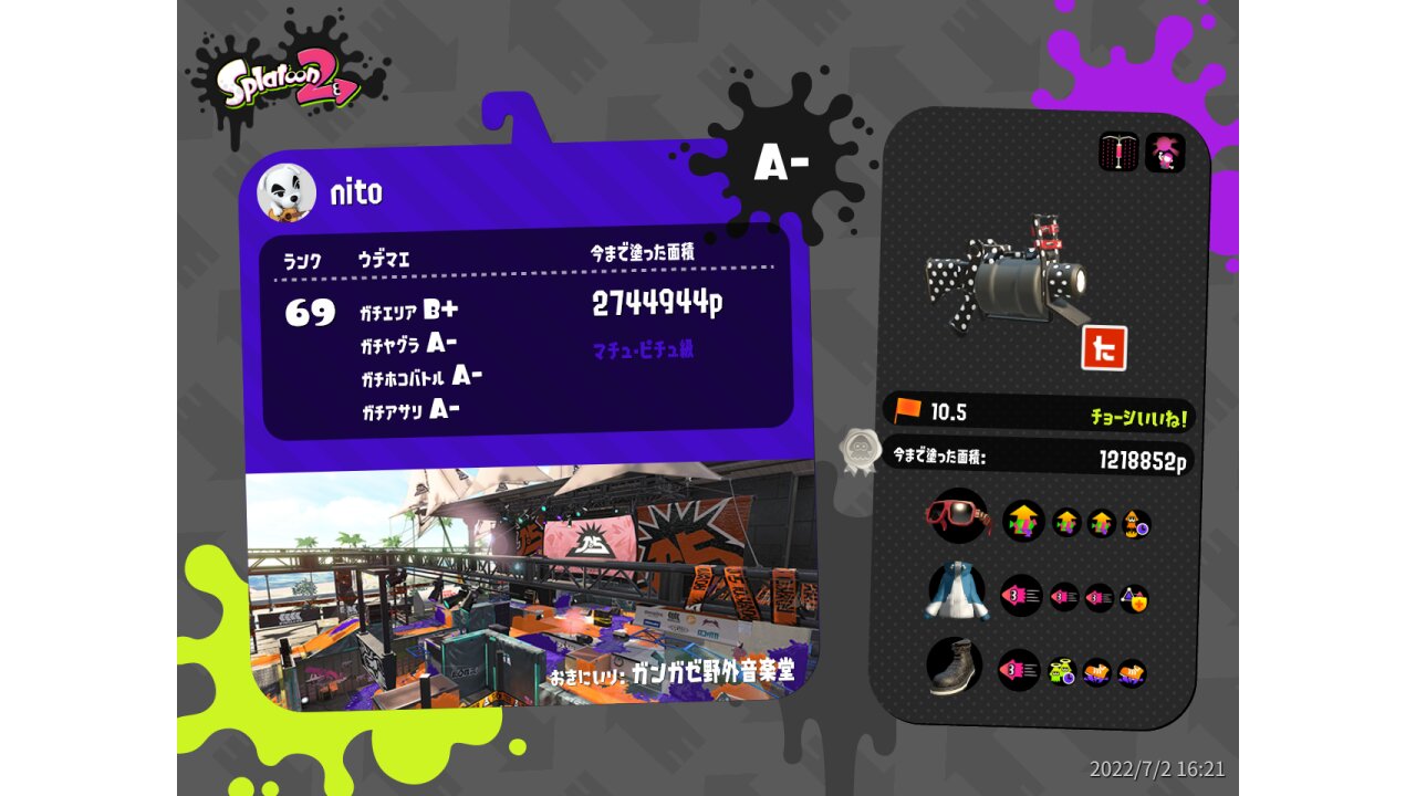 | Name | Weapon | Level | Rank | Inked | k+a/sp | k/d |