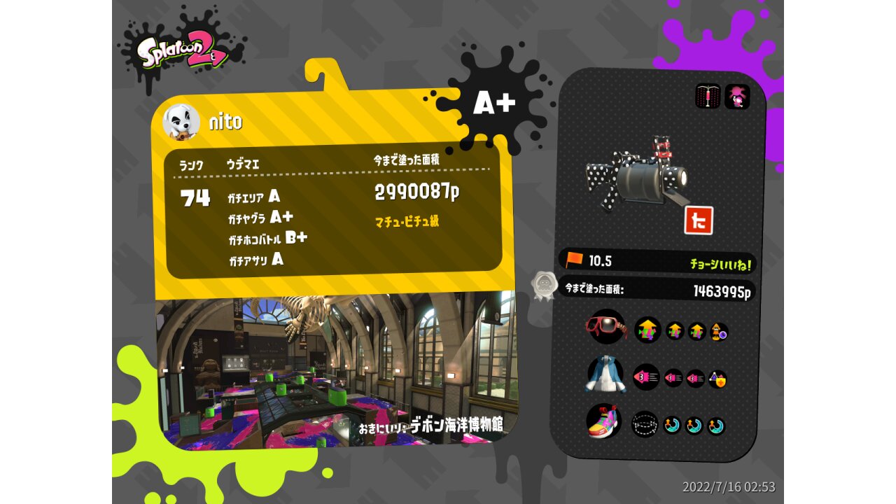 | Name | Weapon | Level | Rank | Inked | k+a/sp | k/d |